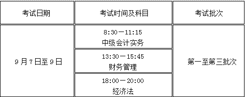 中級(jí)資格考試于2024年9月7日至9日舉行,共3個(gè)批次,各科目具體考試時(shí)間如下(考生具體考試時(shí)間以準(zhǔn)考證為準(zhǔn)):