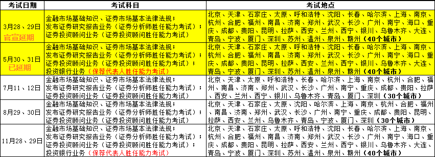 原定2020年證券從業(yè)資格考試計(jì)劃