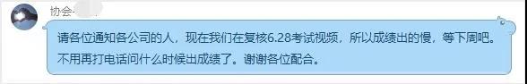 協(xié)會答復(fù):請各位通知公司的人,現(xiàn)在我們在復(fù)核6.28考試視頻,所以成績出的慢,等下周吧。不用再打電話問什么時(shí)候出成績了。謝謝各位配合。所以,再等等吧~在此,祝愿大家逢考必過!