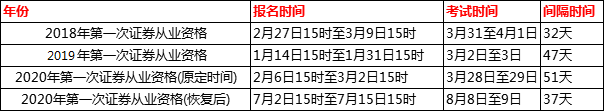 2021年第一次證券從業(yè)資格考試時間為4月10、11日,一般情況下,中國證券業(yè)協(xié)會會在考試前一個月左右進行報名,目前2021年4月河北證券從業(yè)資格考試報名時間暫未公布,廣大考生可根據(jù)參考2018-2020近三年報名時間: