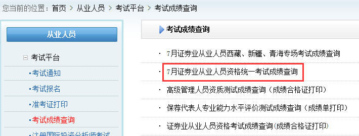 證券從業(yè)資格考試成績查詢流程: