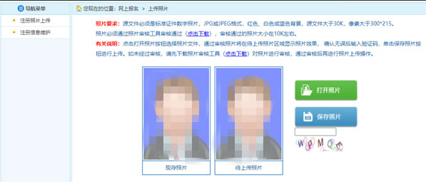 上傳照片步驟:打開(kāi)照片-填寫(xiě)驗(yàn)證碼-保存照片