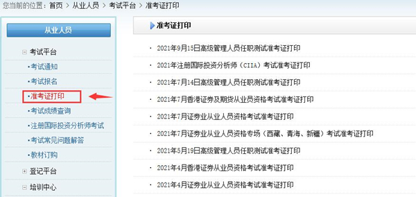 2021年10月證券從業(yè)資格考試準考證打印入口