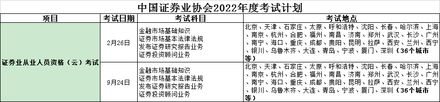 證券業(yè)從業(yè)人員資格(云)考試擬舉辦2次,面向證券公司報考,全國36個城市舉辦。